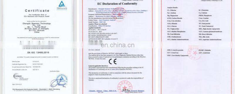 Seamaty has certificates including ISO13485:2012 Qaulity Management System issued by TUV; CE Declaration of Conformity listed by TUV as IVD device; Free Sale Certificate and Patents.