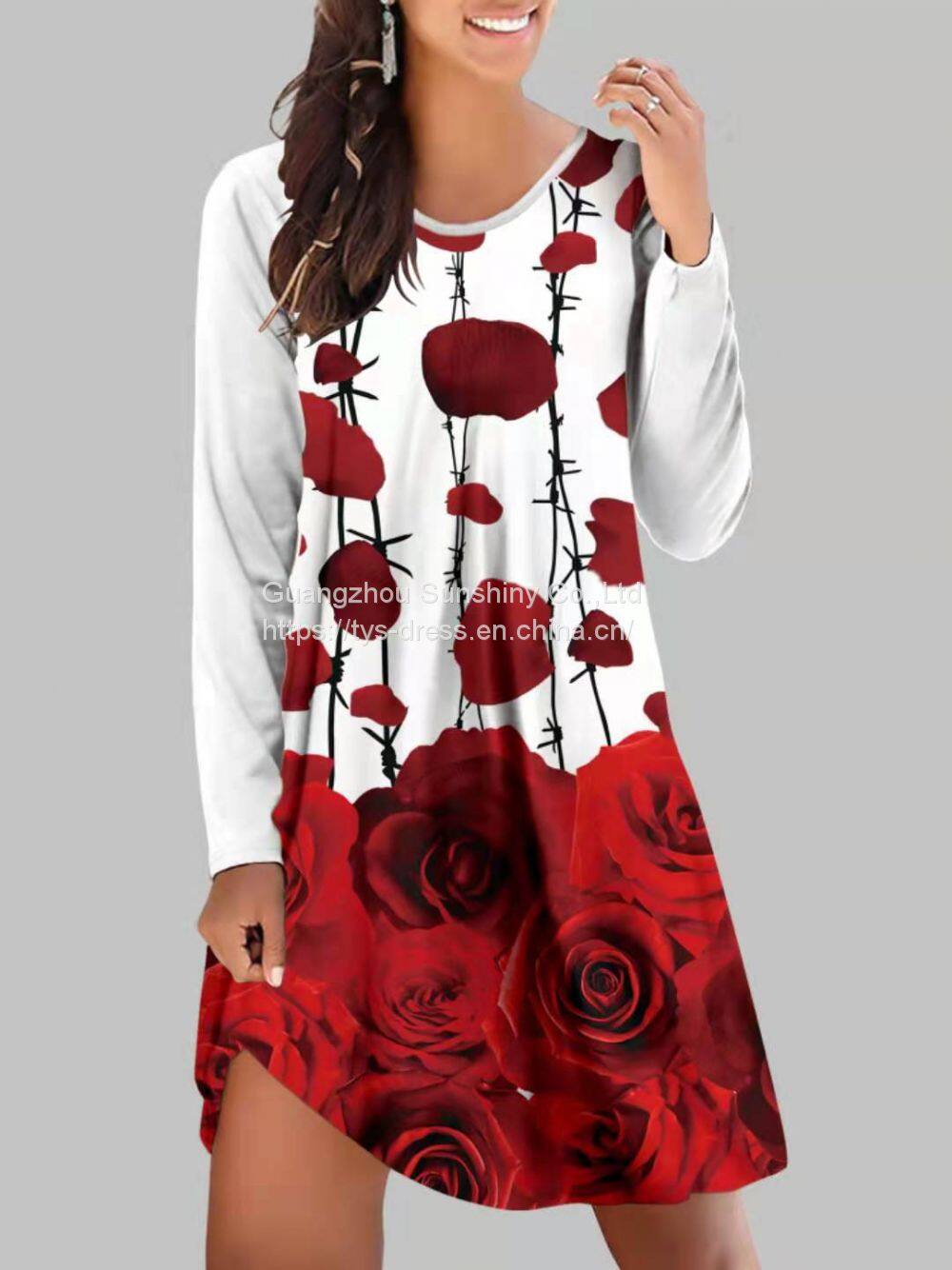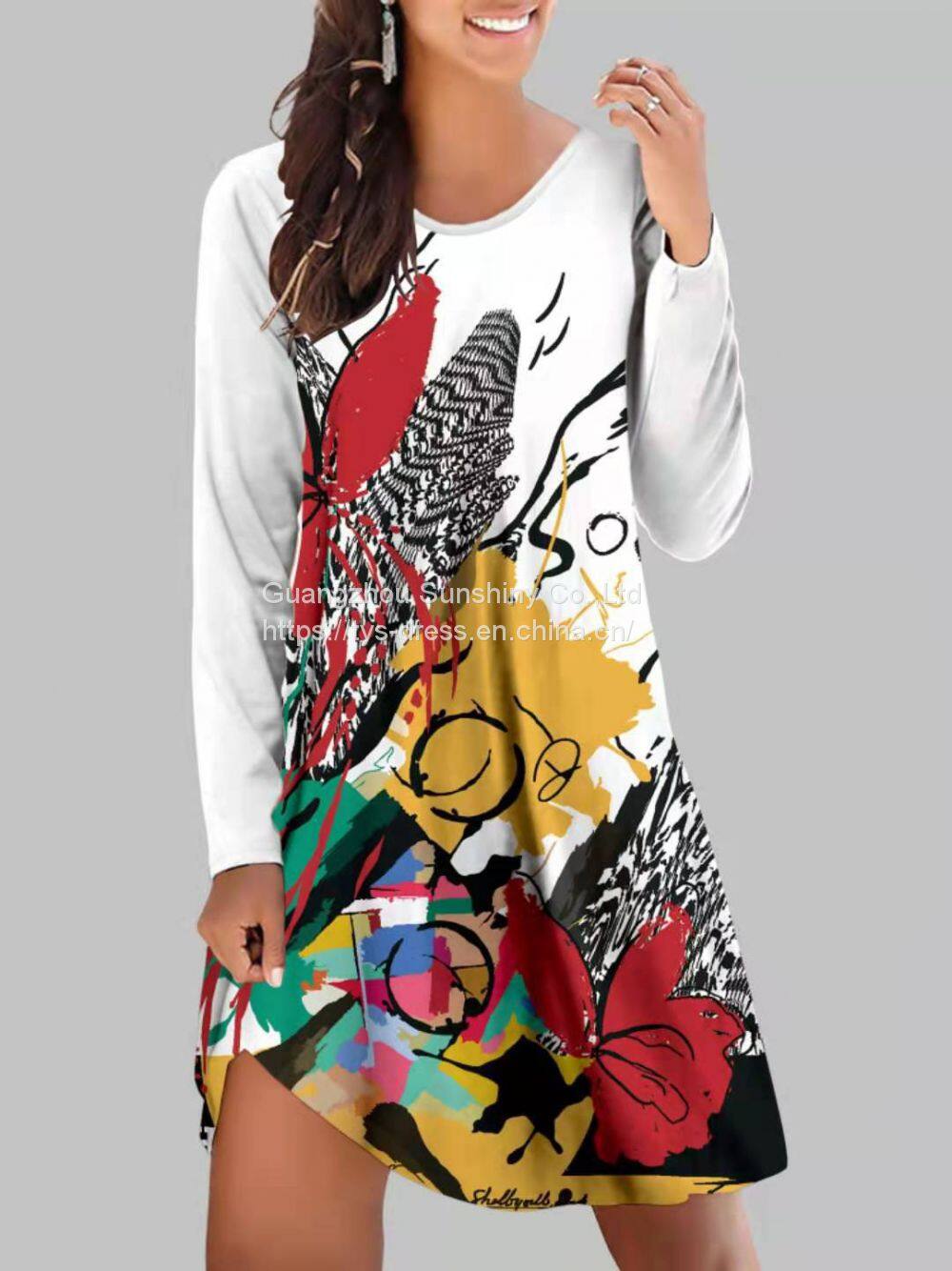 Home > Products > Women dress > Multi Color Printed Loose and Versatile Long-sleeved Dress