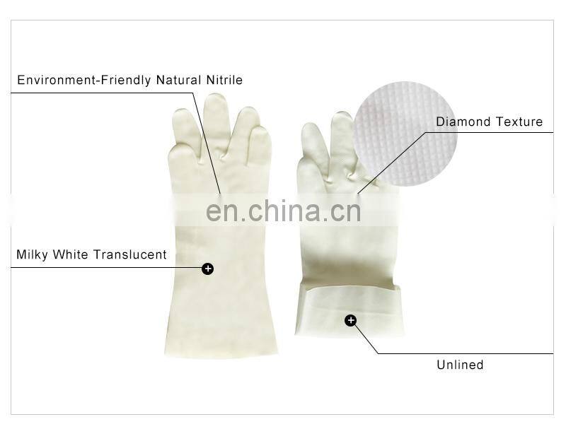 Customized 32 cm Safe Work Milky White Translucent Nitrile Gloves