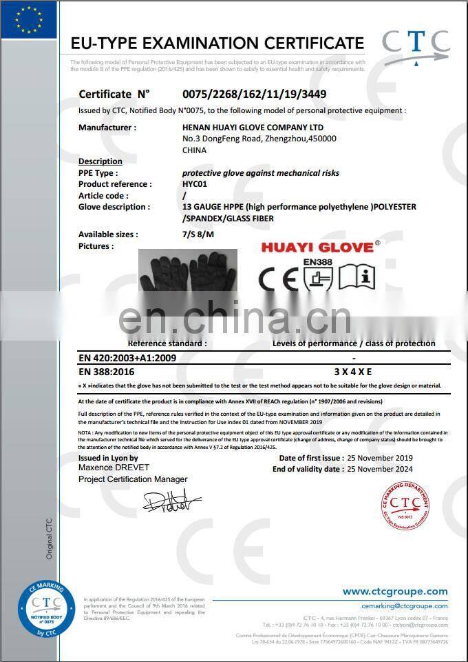 Safety Gloves Cut Resistant Huayi HPPE Anti-cut Working Hand Gloves