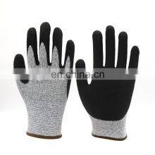 High Quality CE Level 5 Cut Resistant Gloves Sandy Nitrile Coated Abrasion Resistant Cut Resistant Working Safety Glove