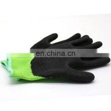- Fluorescent Green Polyester Thread 13 Gauge Knitted Black Wrinkled Foamed Latex Palm and Fingers Coated Safety Work Gloves