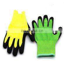 - Yellow Polyester Thread 13 Gauge Knitted Grey Wrinkled Latex Palm Coated Safety Work Gloves for Children