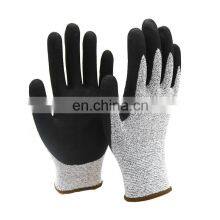 High Quality CE Level 5 Cut Resistant Gloves Sandy Nitrile Coated Abrasion Resistant Cutting Resistant Working Safety Glove