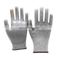 En388 4543 Gray Grip PU Coated Cut Resistant Work Gloves Level 5 Anti Cut Gloves