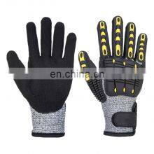 Cut Resistant Level 5 Protection Sandy Nitrile Palm Coated TPR Mechanic Impact Glove