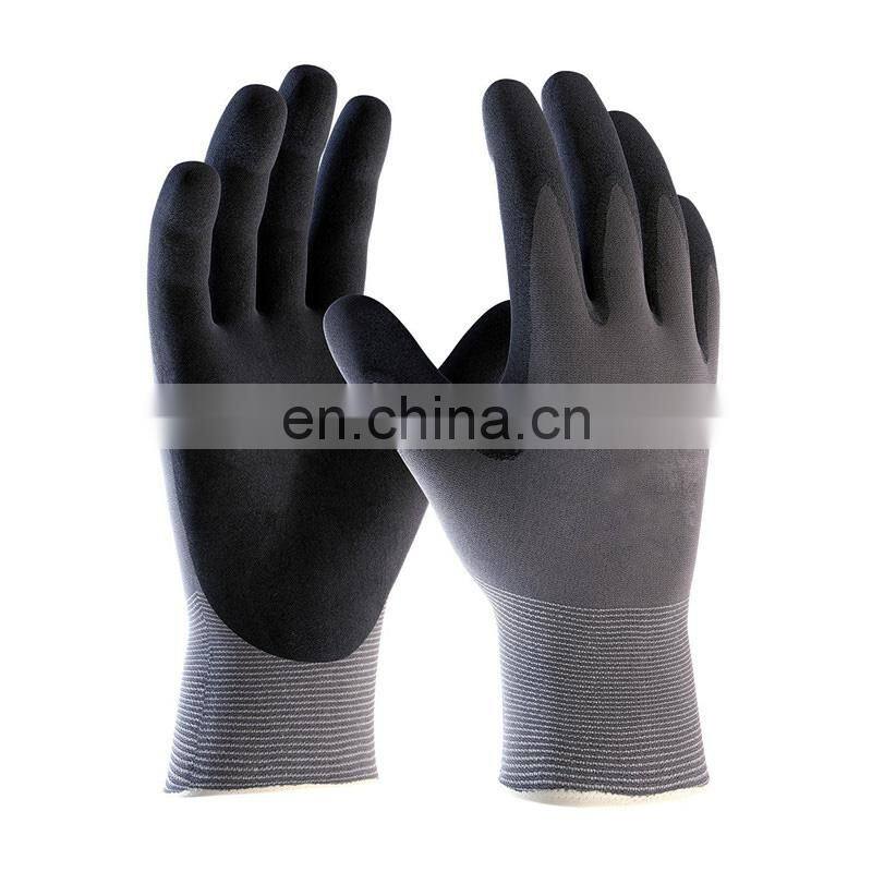 Safety Work Gloves Guantes De Nitrilo Sandy Nitrile Coated Nylon Knitted Black