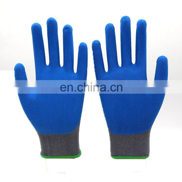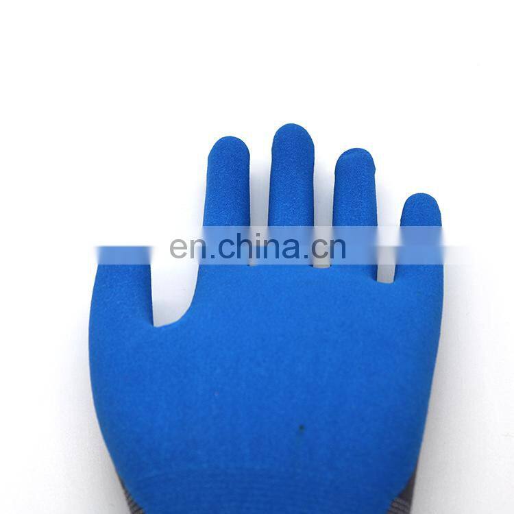 - Blue&white Polyester Thread 13 Gauge Knitted Deep Blue Foamed Wrinkled Latex Palm Coated Safety Work Gloves