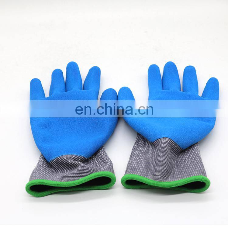 - Blue Polyester Thread 13 Gauge Knitted Grey Wrinkled Latex Palm Coated Safety Work Gloves for Children