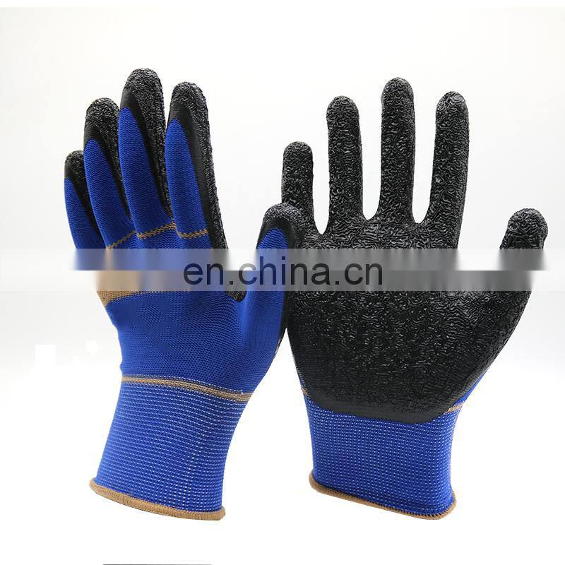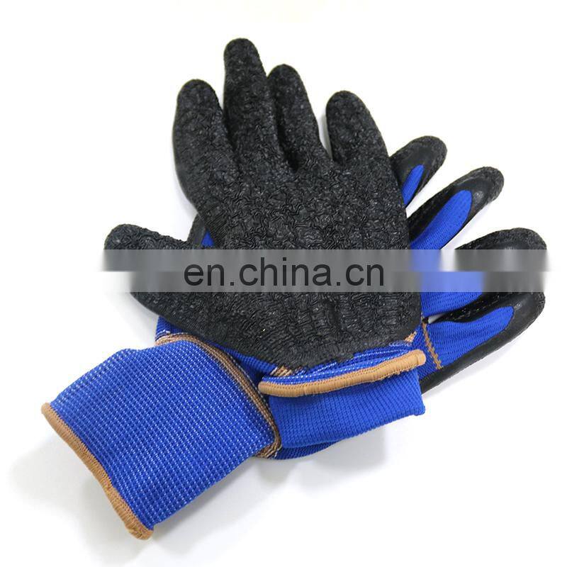 Latex Coated Industrial Gloves Crinkle Latex Black Work Gloves Safety Construction