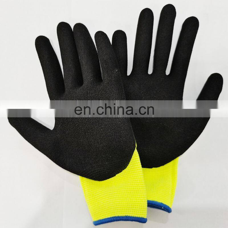 Hot Selling Knitted Liner Coated Nitrile Sandy Cheap Safety Work Gloves Black
