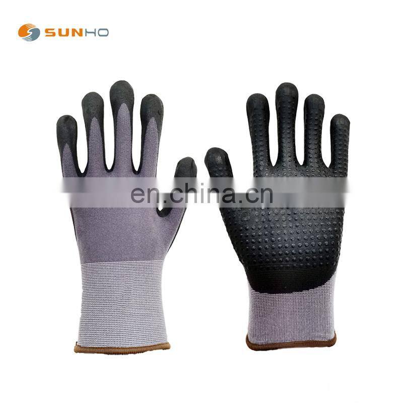 Sunnyhope Hot Sales Gloves 15G Nylon With Micro Foam Nitrile With Dots Palm Coated Gloves