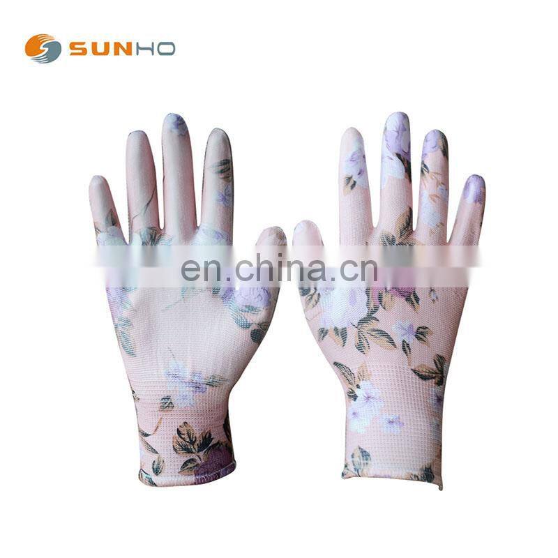 Sunnyhope Cheap Gloves PU Coated Finished Safety Work Gloves 13 Gauge Knitted Liner Floral