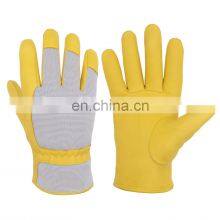 HANDLANDY Yellow Whole Grain Goat Skin Palm Ladies Gardening Gloves Working Glove Safety Gloves Guantes