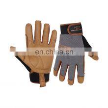 HANDLANDY Breathable Flexible Spandex Back Knuckles Protection Deerskin Leather Palm Mechanics Work Gloves