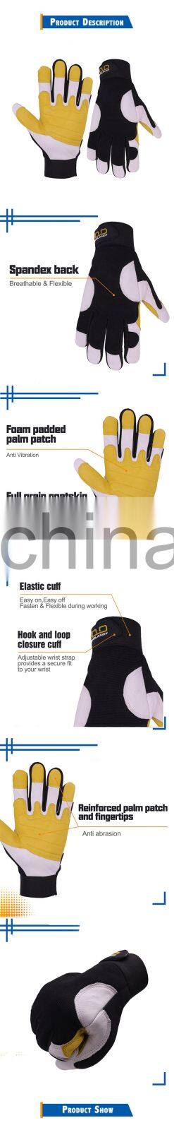 HANDLANDY Full Grain Goatskin Leather Palm With SBR Padded Goatskin Leather Work Gloves Mechanics Gloves Construction Gloves
