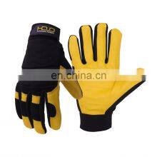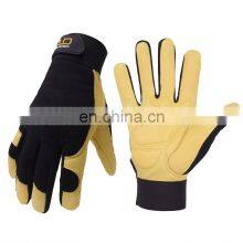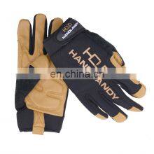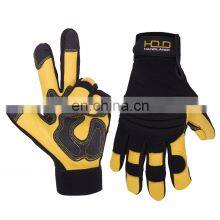 HANDLANDY High Quality Comfortable Goatskin Mechanic Safety Leather Vibration-Resistant Working Industrial Leather Gloves