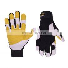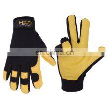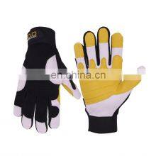 HANDLANDY In Stock Yellow Soft Dexterity Goatskin Leather Mechanic Safety Vibration-Resistant Heavy Duty Leather Work Gloves
