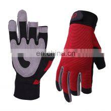 HANDLANDY Breathable Flexible Dexterity 3 Open Fingers Light Duty Industrial Work Gloves Multi Purpose Red Work Gloves