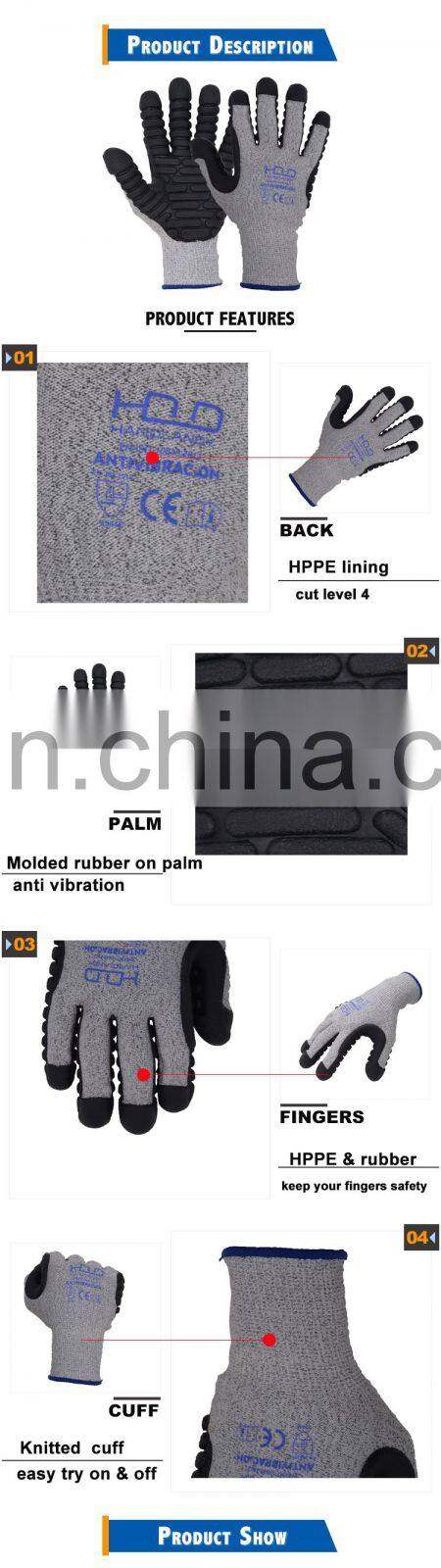 HANDLANDY Excellent Grip Vibration-Resistant Cut Resistant Safety Working TPE Dippedwork Protection Gloves