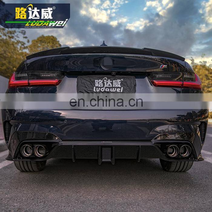 Gloss Black Body Kit Rear Bumper Lip Diffuser Spoiler With LED For BMW G20 Rear Bumper Lip