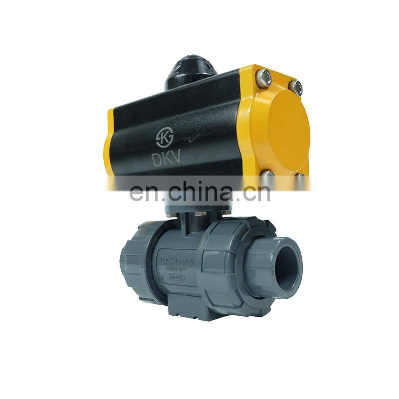 DKV High Efficiency 220V 1 Inch Abs Upvc Water Plastic Double Union Thread 1 One Way Actuator Pneumatic Ball Valve