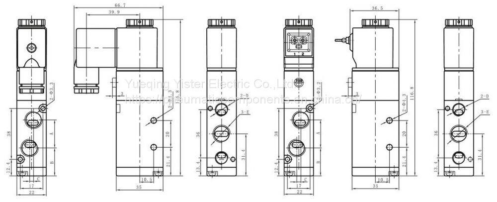 Dimension for 4V220-08 5/2 way Aluminum alloy Solenoid valve