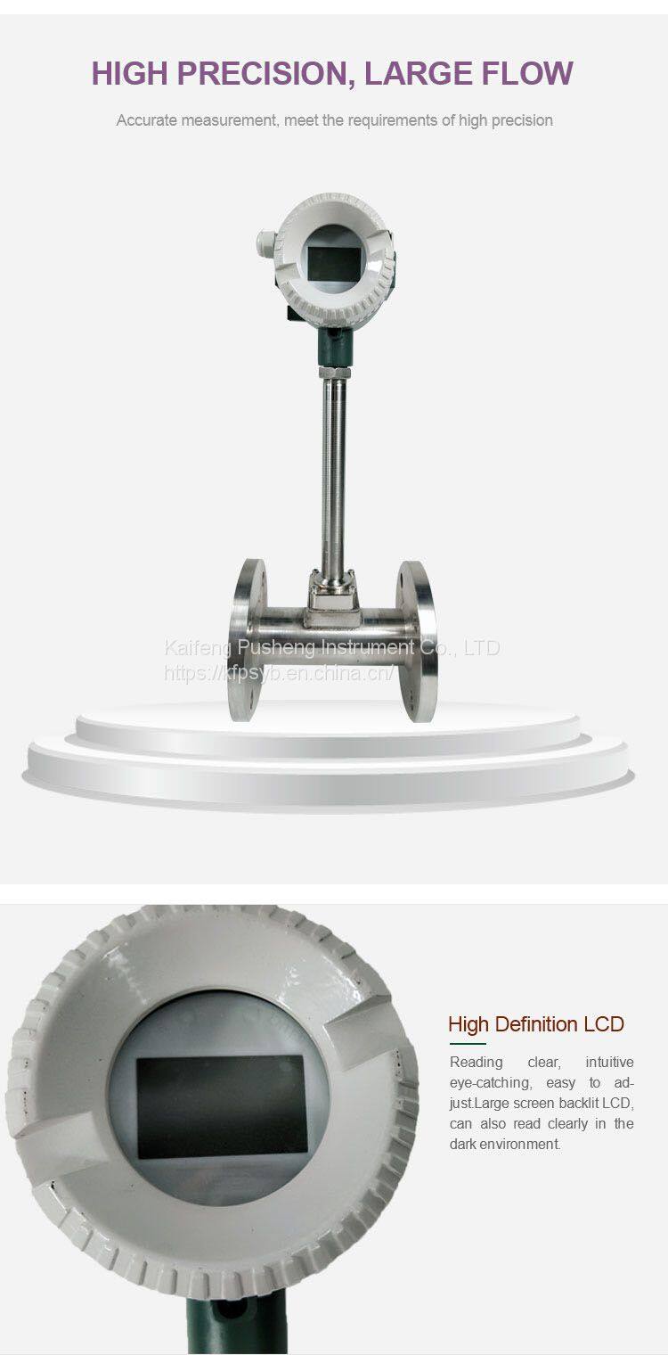 1. Simple and firm structure, no moving parts, high reliability, very reliable for long-term operation. 2. Simple installation and convenient maintenance. 3. The detection sensor is not in direct contact with the tested medium, with stable performance and long service life. 4. The output is pulse signal proportional to the flow, without zero drift and with high accuracy. 5. Wide measuring range, range ratio up to 1:10. 6. Less pressure loss, lower operating cost and more energy saving. Within a certain Reynolds number range, the frequency of the output signal is not affected by the physical properties and component changes of the fluid, and the instrument coefficient is only related to the shape and size of the vortex body. There is no need to compensate when measuring the volume flow of the fluid, and it is generally not necessary to re-calibrate the instrument coefficient after replacing the fittings. Wide application range, steam, gas, liquid flow can be measured.