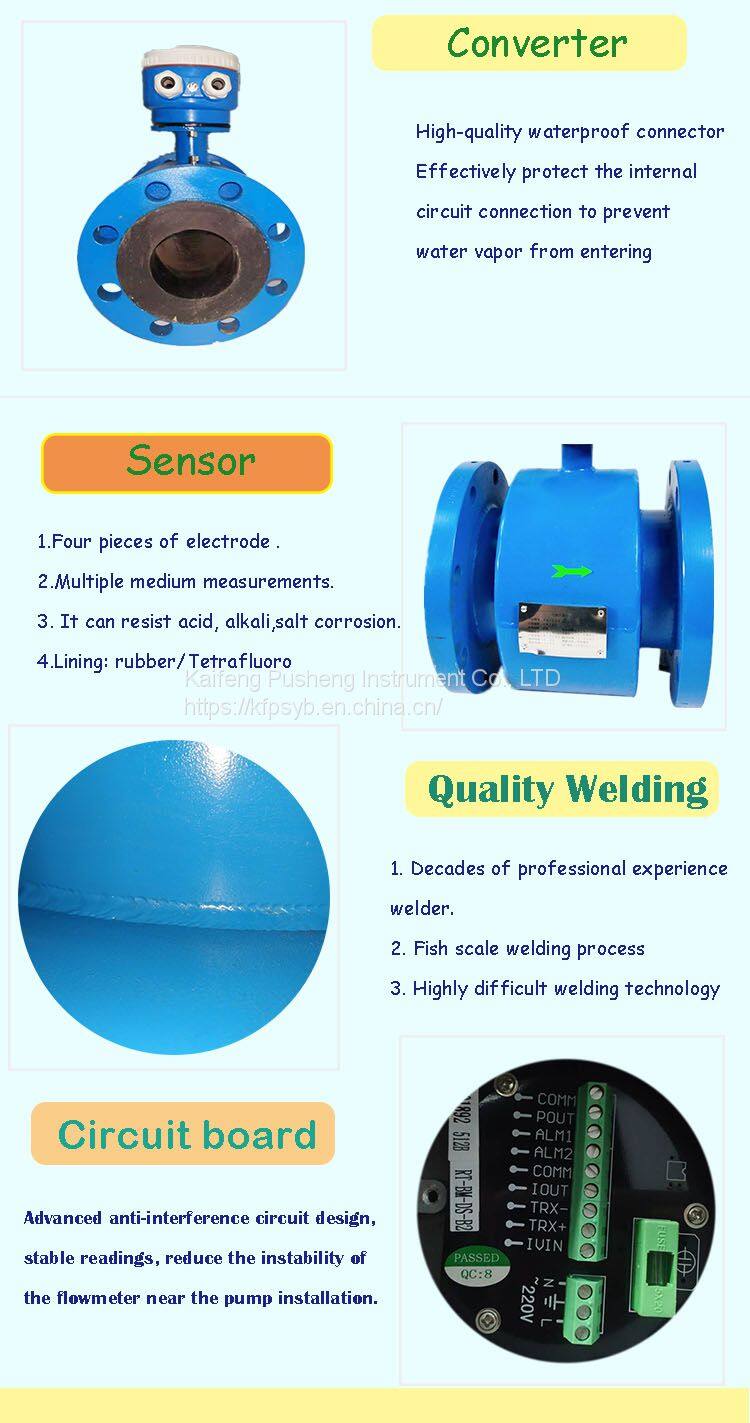 Magnetic circuit system: its function is to produce a uniform DC or AC magnetic field. Dc magnetic circuit to achieve with a permanent magnet, its advantage is simple structure, the ac magnetic field interference is small, but it is easy to make by measuring the electrolyte liquid polarization in the ducts, the positive electrode is surrounded by negative ion, negative electrode is surrounded by positive ions, the electrode polarization, and lead to increased internal resistance between two electrodes, thus seriously affect the normal work of the instrument. When the diameter of the pipe is large, the permanent magnet is correspondingly large, cumbersome and uneconomical, so the electromagnetic flowmeter generally uses alternating magnetic field, and is generated by 50HZ power supply excitation.Electrode: its role is to elicit and measured proportional to the induction potential signal. Electrodes are generally made of non-magnetizing stainless steel and are required to be flush with the lining so that fluid can pass unimpeded. Its installation position should be in the vertical direction of the pipeline, in order to prevent sediment accumulation on it and affect the measurement accuracy.