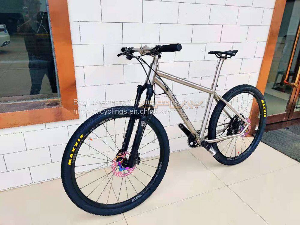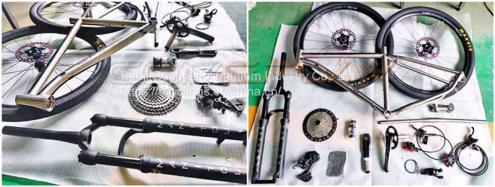 All our handcrafted titanium mountain bikes represent the purest ride experience on the trails. Made in China but high quality Custom tubing chosen per frame size. Oversized Aerospace Titanium 3/2.5 Grade Tubing, 6/4 on the yoke and dropouts. Machined head tube for tapered or straight forks. Clean thoughtful cable routing All tubes are heat sunk and argon purged when welded to prevent distortion and material thinning