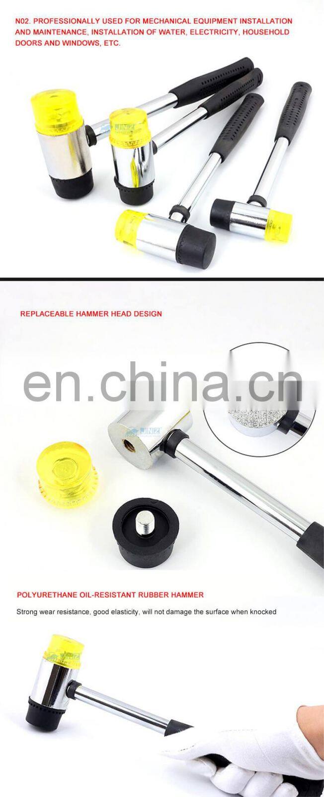 JNZ double-sided DIY replaceable hand tool supplier popular sale building rubber hammer installation hammer