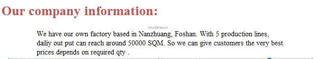 This is Ms Constance from Foshan JBN Ceramics saying hello to you, we have 13years in manufacturing and exporting tiles and mosaics. high quality and best service always our purpose. 4000sqm showroom factory located in Foshan.