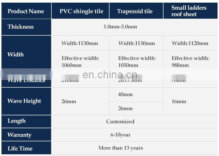 A. The quality guarantees are different. Upvc is 10 years / ASA synthetic resin tile is 30 years / ASApvc is 25 years.