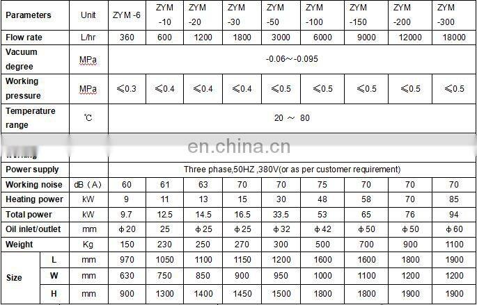 Drain up vacuum at 59~71m3/h pumping speed, create a tight vacuum state for oil purification quickly and have a 10 years guaranteed service life.