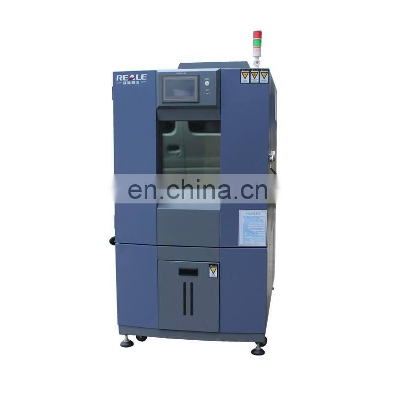 High low temperature test chamber is used to test the change of material under extremely high temperature and extremely low temperature environment that continue alternation in the shortest time, Testing the chemical changes or physical damage of material caused by the thermal expansion and contraction. Testing box divided two parts, one is high-temperature region, another is low-temperature region, the testing sample placed on the moving basket, using unique heat storage and cool storage, the cylinder taking basket moves up and down in the hot and cold region to complete the hot and cold temperature impact testing; applied to test the material, including metal, plastic, rubber, electronics and other materials, it can be used as a basis for improvement of their products.