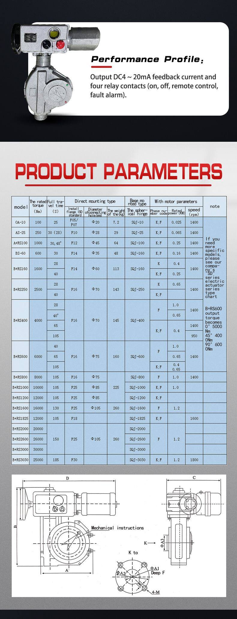 Switch Type Electric Actuator B+RS800/K105Z Bluetooth Control Bus Protocol
