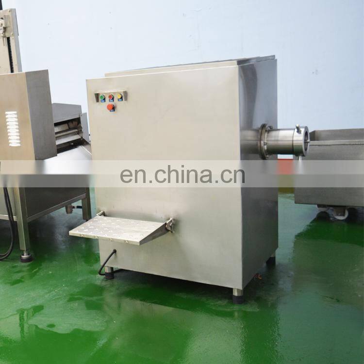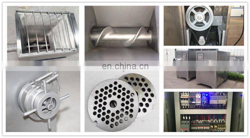 This machine is the necessary equipment for meat processing. It can directly grind unfrozen pieces of meat to make different specifications of meat particles. The machine's hopper and hopper are integrated into one body. All the ground meat parts and outer packaging are made of high-quality stainless steel. They are bright and smooth, easy to clean, Meet food hygiene requirements.