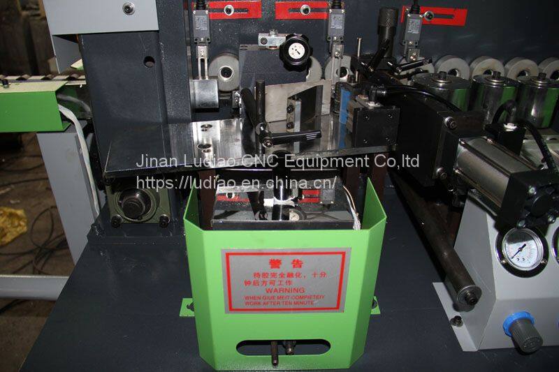 This machine is mainly used plywood, fiberboard, and Dimensional cross-section of particle board straight structure Edge. It is compact structure, reasonable layout and aesthetic appearance; Usage of sound insulation, Dust collection port, anti-overload devices; It has edge banding, the upper and lower trimmer, surface polishing work unit; It is a new, multi-functional, straight edge banding machine, which is very popular in woodworking furniture factory of all ages