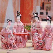 Chinese Hand Maded Ceramic Antique Colorful Beauty Porcelain Figure Statues