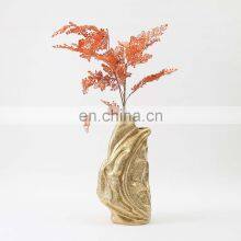 Modern Luxury Ceramic Porcelain Home Decor Irregular Shape Golden Vase For Flower Arrangement