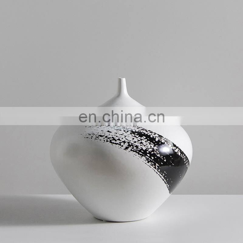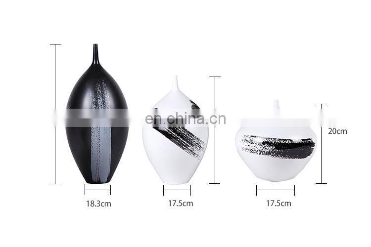 Modern Extremely Light Luxurious Black And White Porcelain Ceramic Vase For Hotel Home Office Decoration