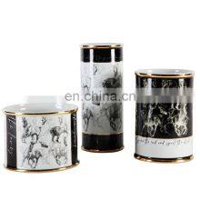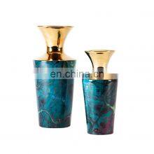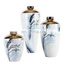 Luxury Marble Design Home Decoration Plated Porcelain Craft Gold Edge Vase