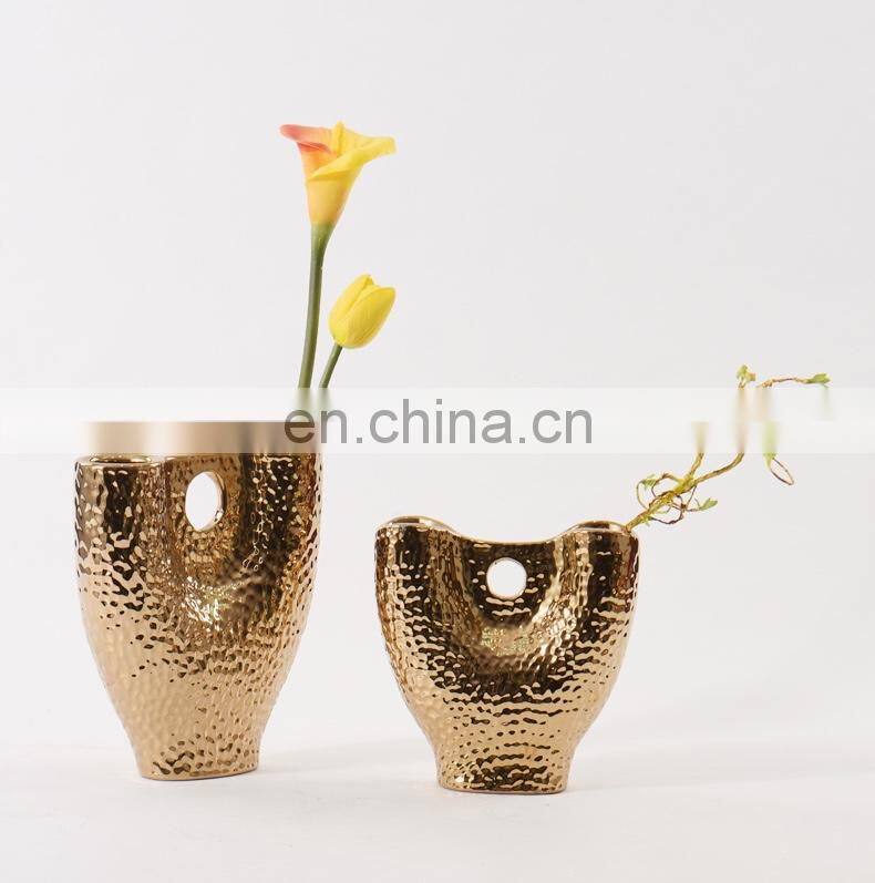 Nordic Modern Luxury Flower Pocerlain Vase Arrangement Golden Ceramic Vase for Home Decor