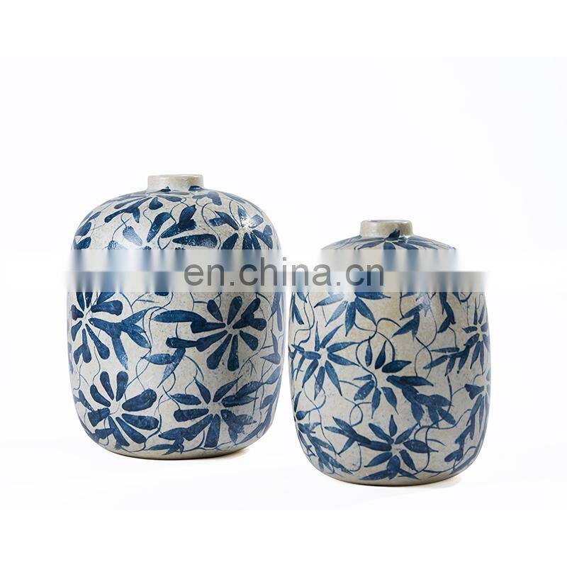 Home > Products > Ceramic Vase > Hand Drawn Chinese Traditional Pattern Of Blue And White Leaves Ceramic Vase For Home Decor Decoration