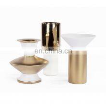 Direct Manufacturer Bright White And Gold Luxury Flower Vases Big Golden Ceramic Vase For Home Decoration