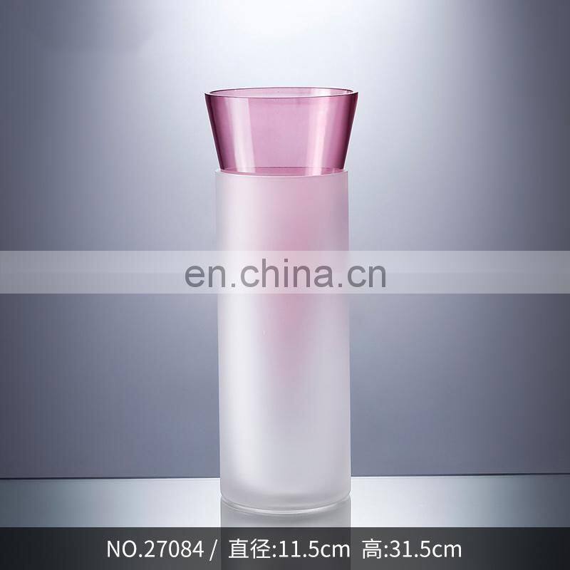 Wholesale Nordic Style Decorative Handmade Double Matte Pink Vase Glass Cylinder Vases