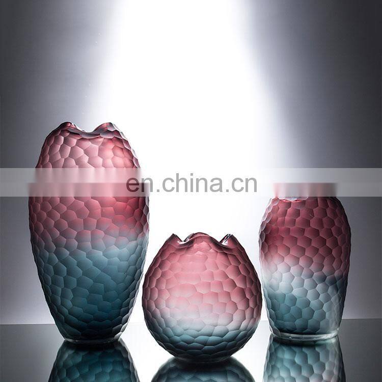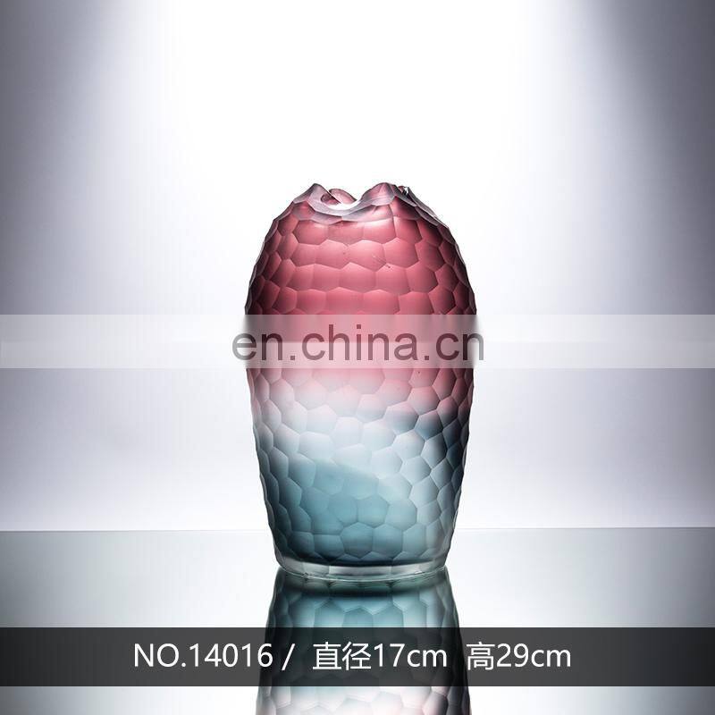 Decorative Modern Transparent Handmade Blue And Pink Color Pattern Glass Vase For Home Decoration