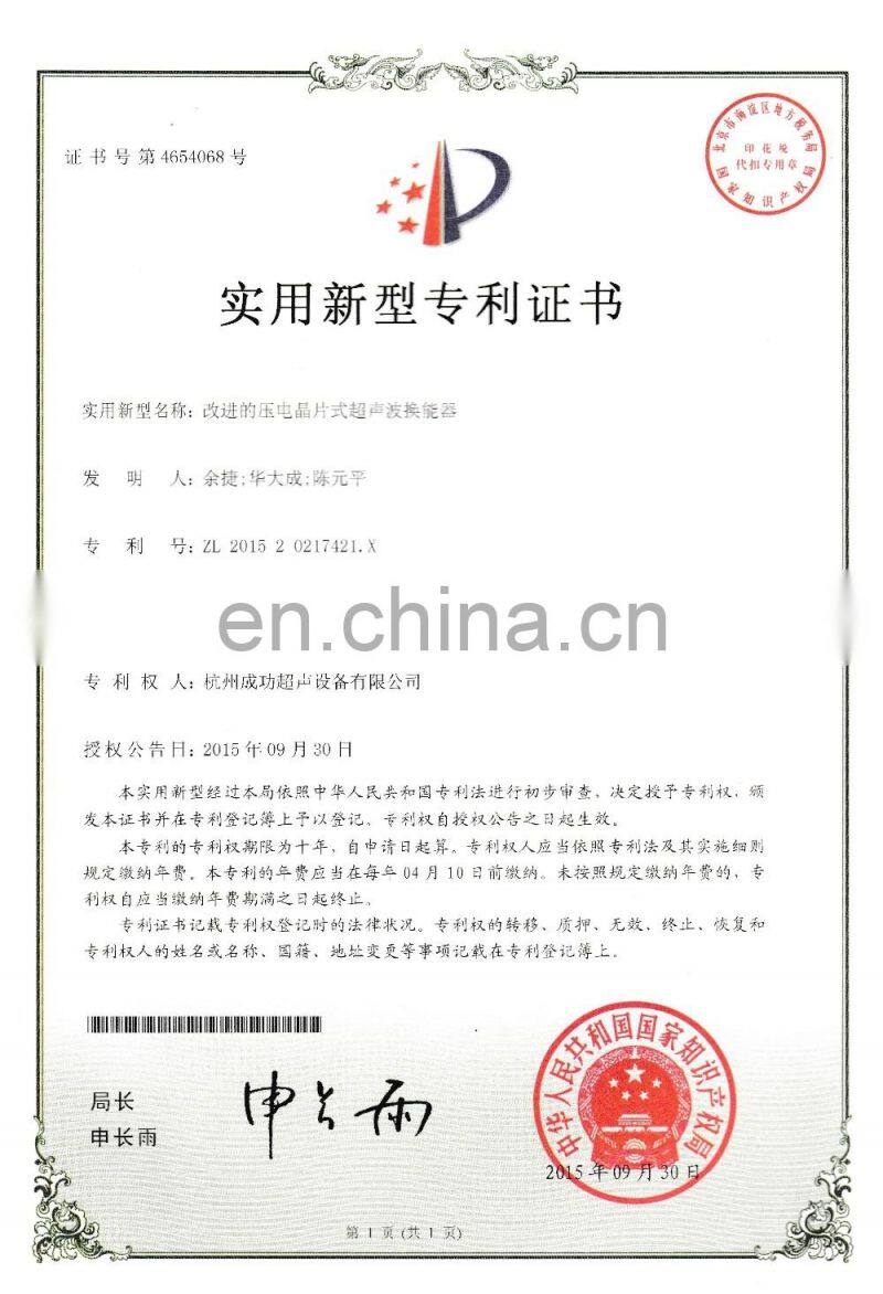 Founded in 1995, with about 30 Years Experiences, from a small Transuder manufacture develop into a professional ultrasonic equipment manufacturer. we fousced on Design and Development of High Power Ultrasonic Products, FYCG supply ultrasonic core parts and technical support for ultrasonic complete equipment company, developing new style high-power ultrasonic applications. Our suctomers thoughout research institutions, universities, large and small enterprises. We also has a High-power Opening Ultrasonic Laboratory, has enough strength to provide superior solution.