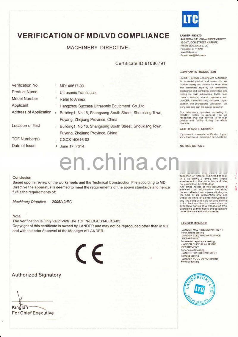 HANGZHOU SUCCESS ULTRASONIC EQUIPMENT CO.,Ltd