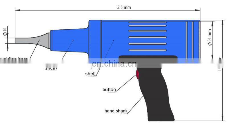 Handheld ultrasonic welding machines, also known as portable ultrasonic welding machines, handheld ultrasonic welding machines, hand-held welding machine, portable welding machine, ultrasonic spot welding, riveting machines, ultrasonic point welder, can be used for the butt welding of thermoplastics,welding head can also be replaced according to customer demand for riveting, spot welding, embedding, removal process, compared to other traditional crafts (such as adhesive, scald together or screw fastening, etc.), with high production efficiency and welding qualitygood, environmentally friendly and energy-saving advantages.